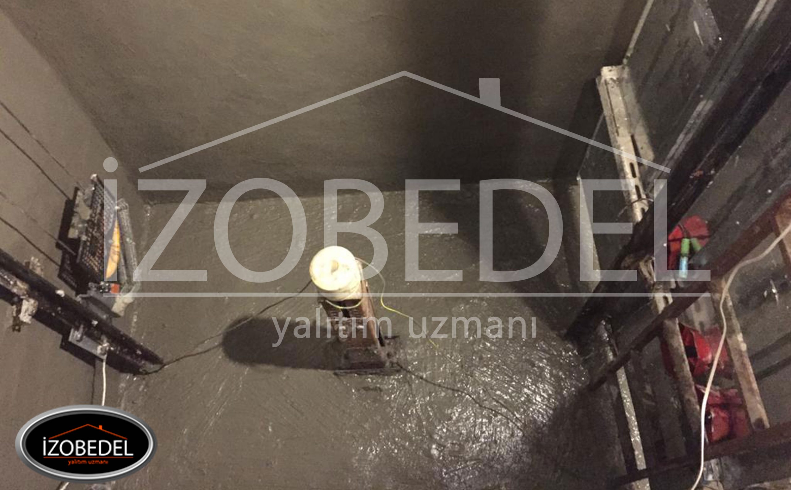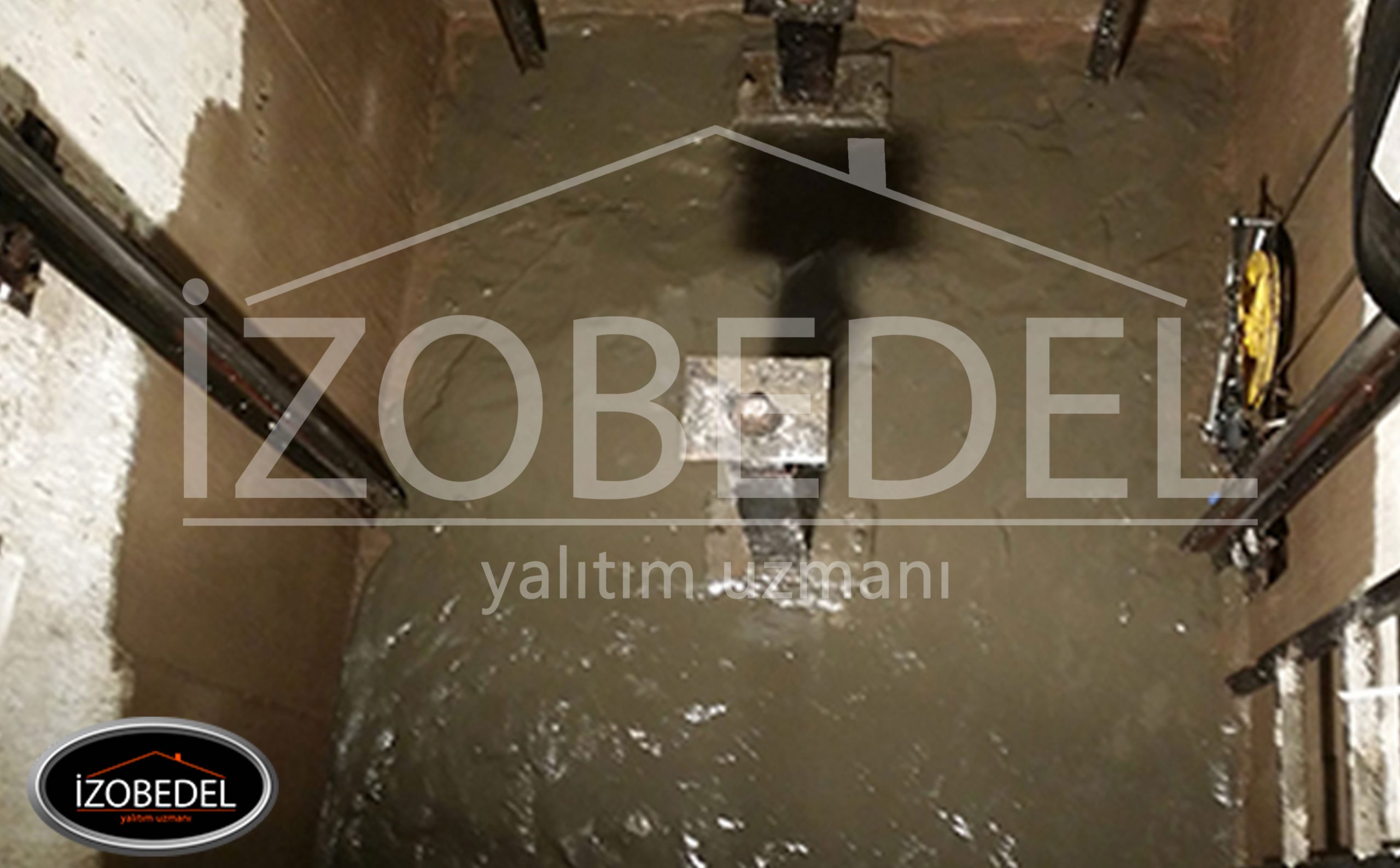 Asansör kuyularının Yalıtımı dışarıdan yapılması genelde mümkün olmamaktadır. Böyle durumlarda yalıtım iç yüzeylerden, negatif su basıncına dayanıklı İZOBEDEL PUR(Polyura Türkiye)  malzeme ile yada akıntı çok olduğu zaman duvarlardan enjeksiyon yapmak kaydıyla yalıtım işleme yapılmaktadır.Kullanılacak işlem için 20 yıl  verilmektedir.